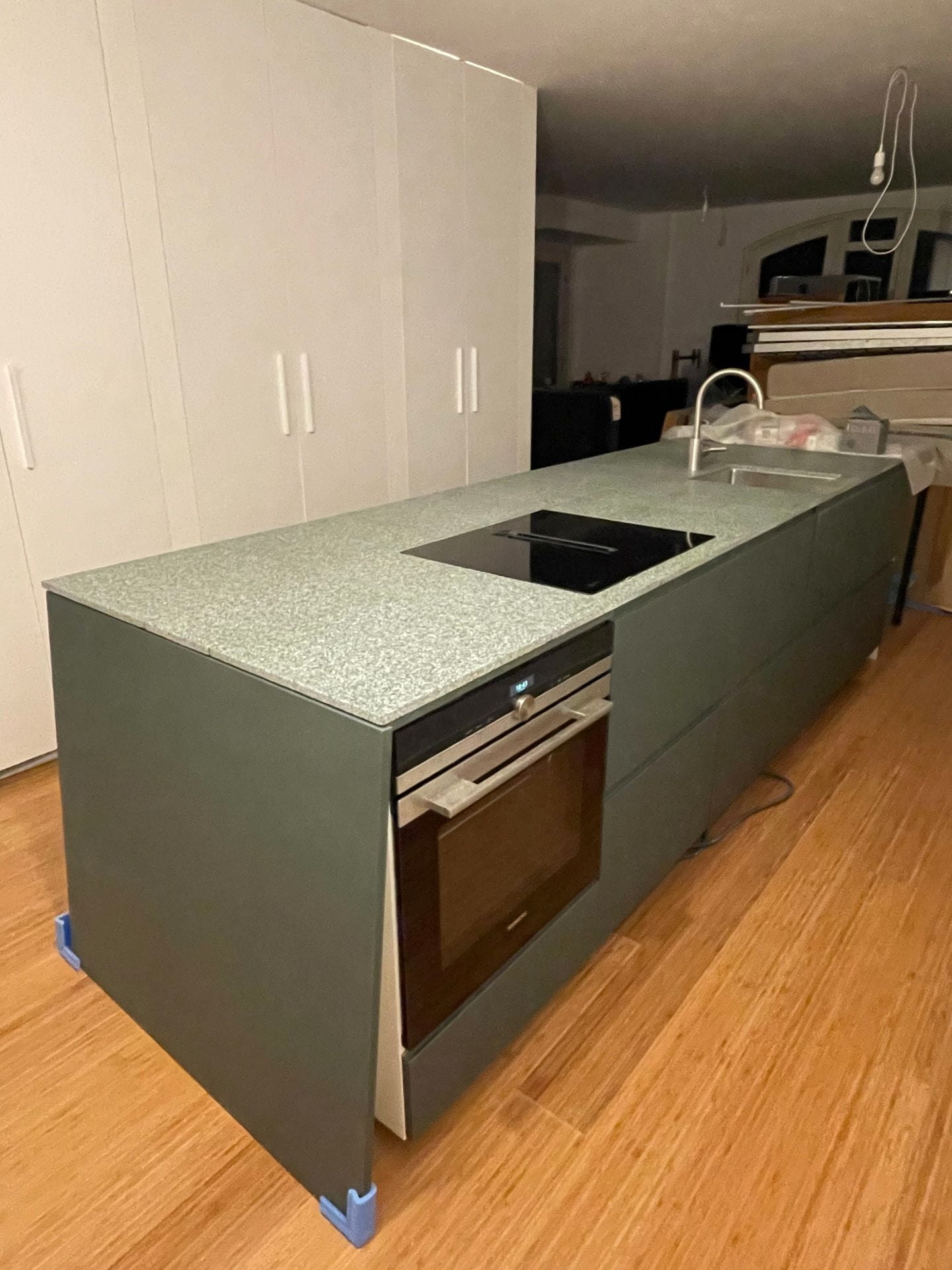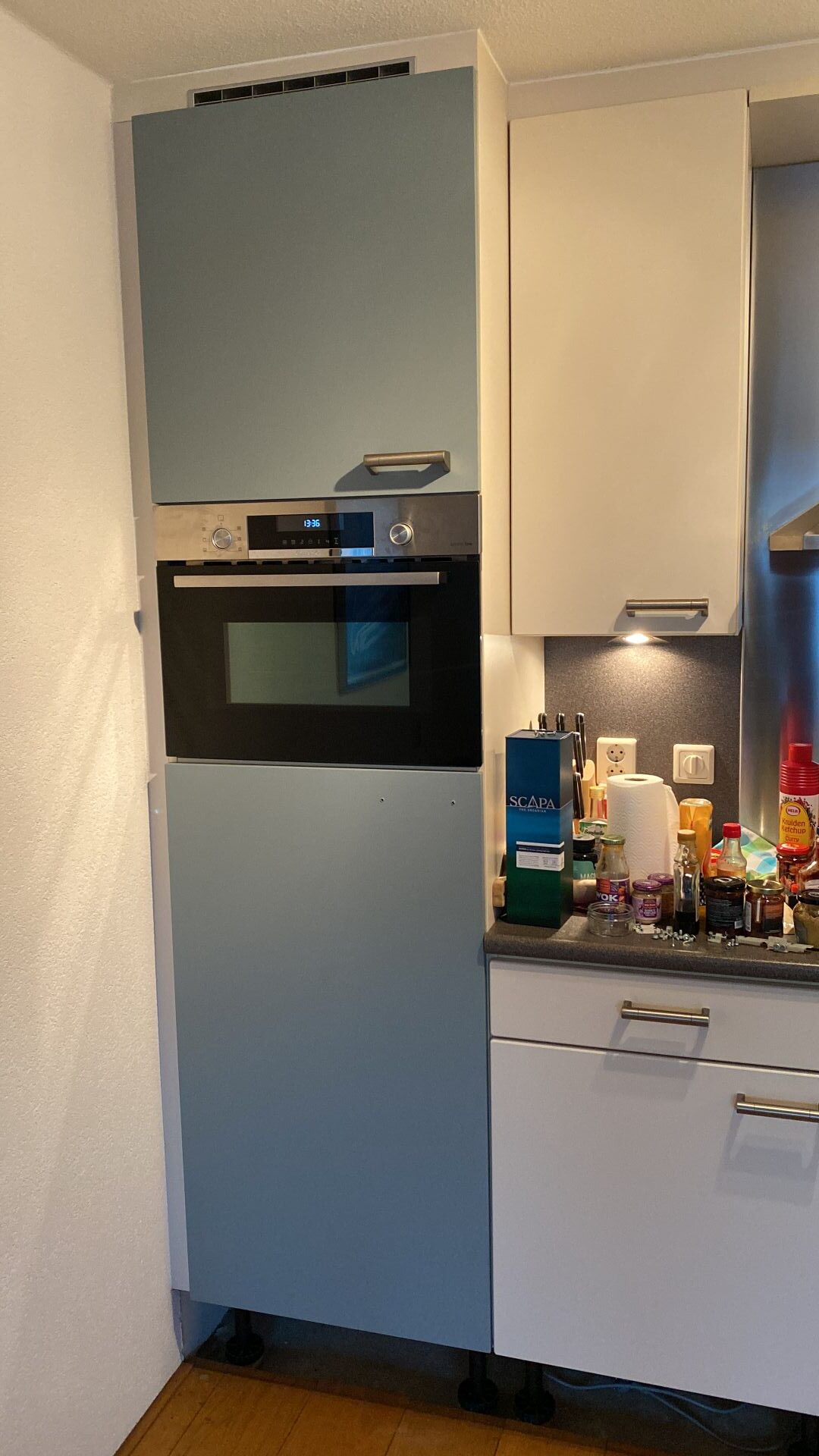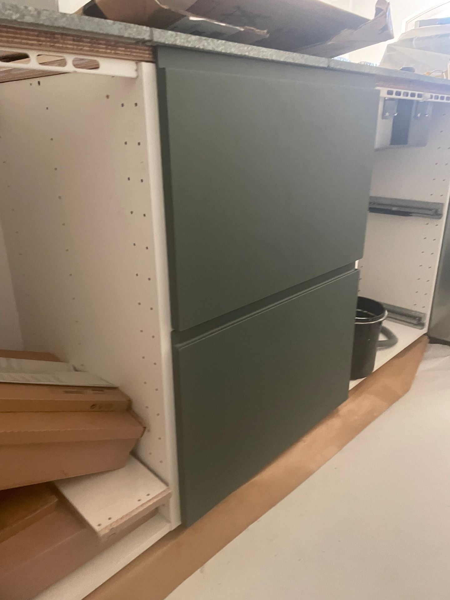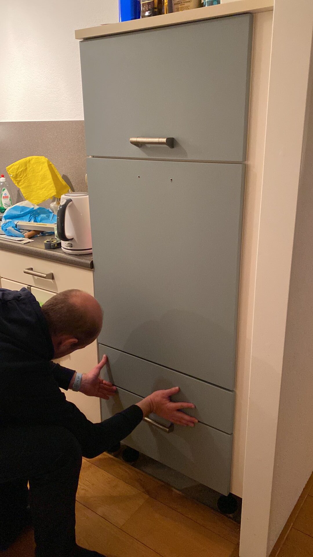 Als jij, in onderstaande foto, het verschil ziet tussen het nieuwe front en die al in de keuken zaten… dan is dat heel knap. 100% match. Ben heel blij.
