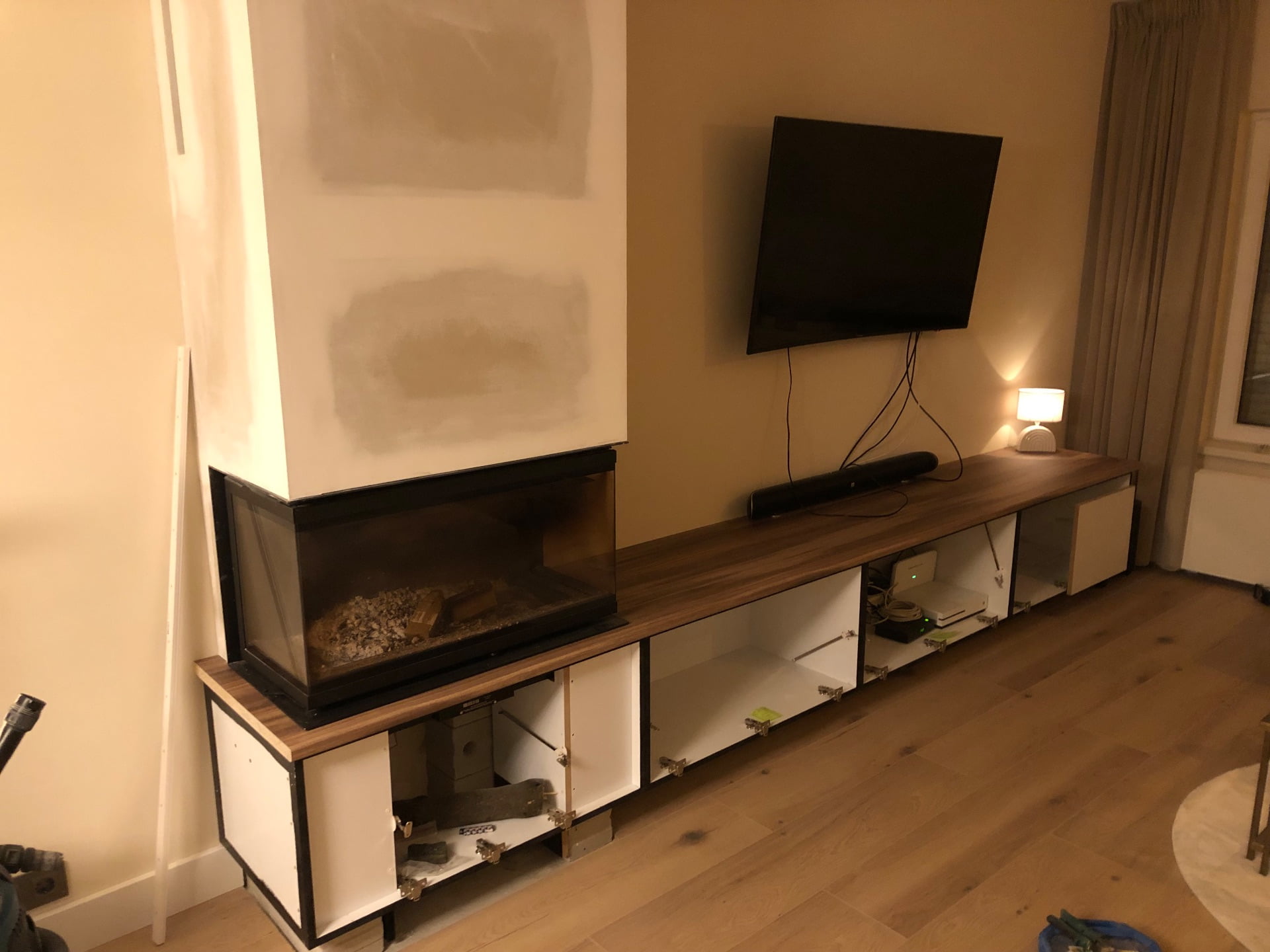Heb zelf een vrijhangend dressoir met haard gemaakt en hiervoor de fronten (kleppen) en zijpanelen bij keukendeurtjes af fabriek besteld.