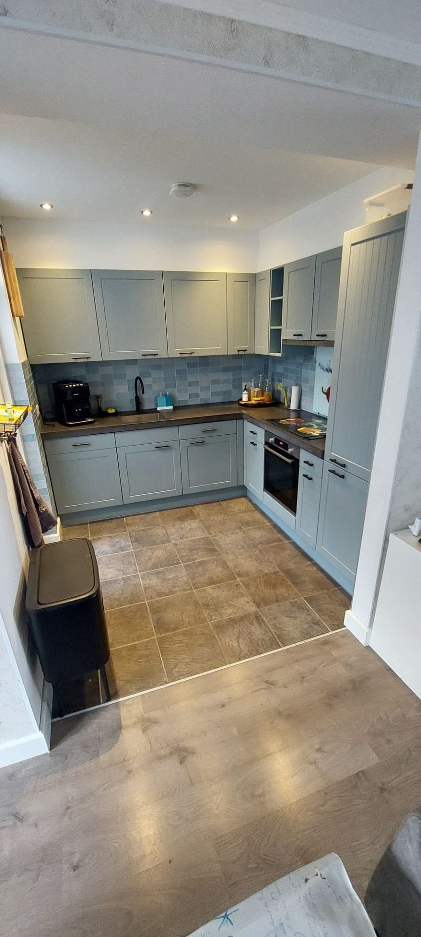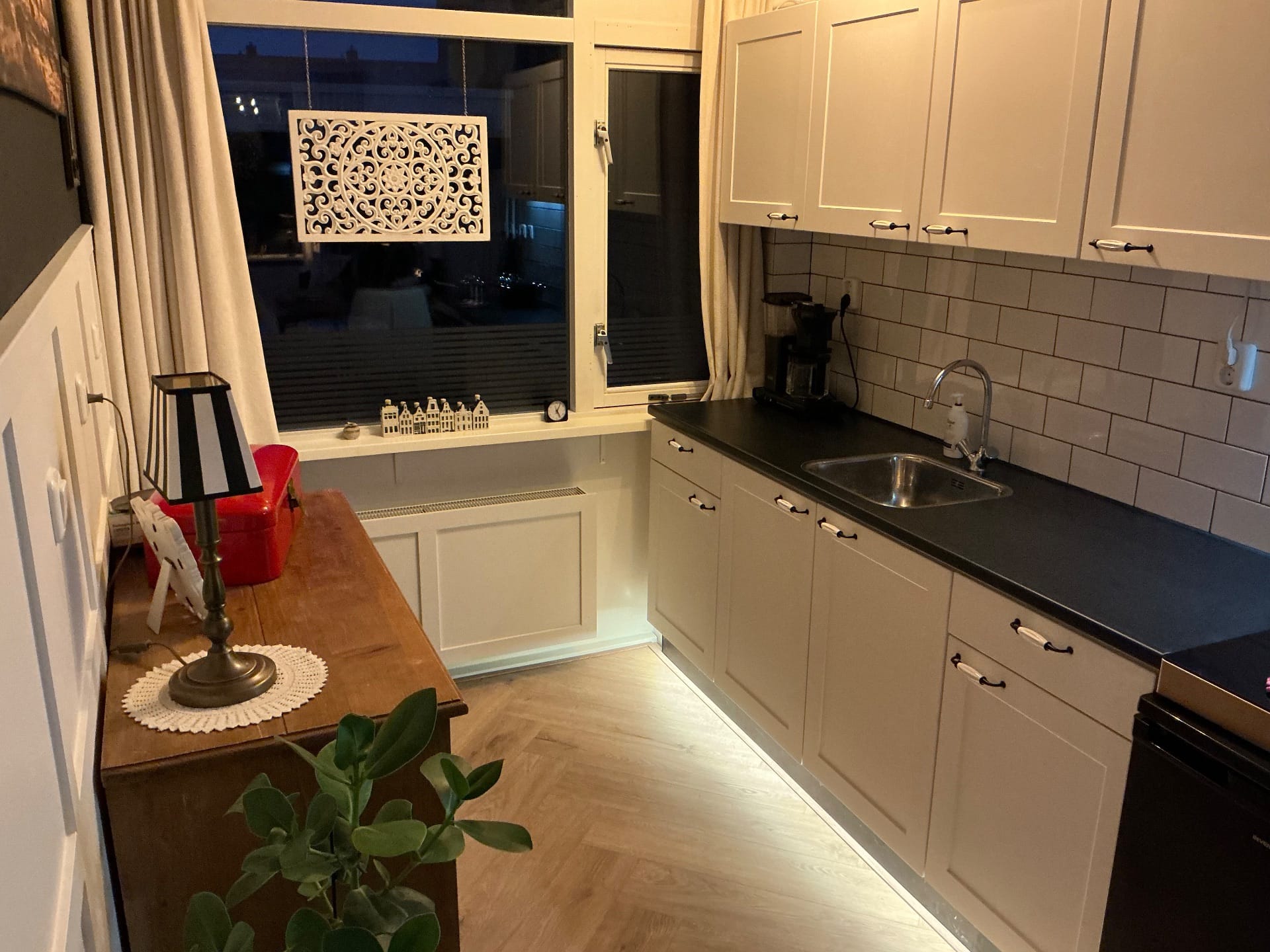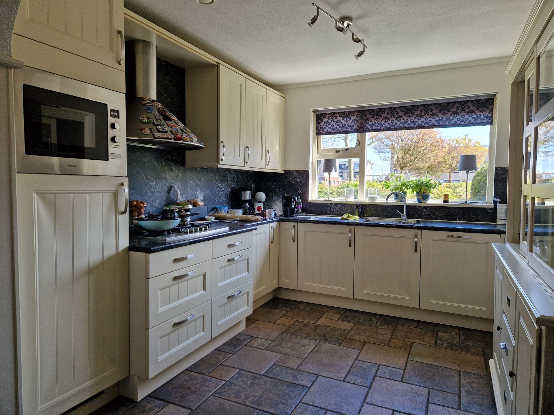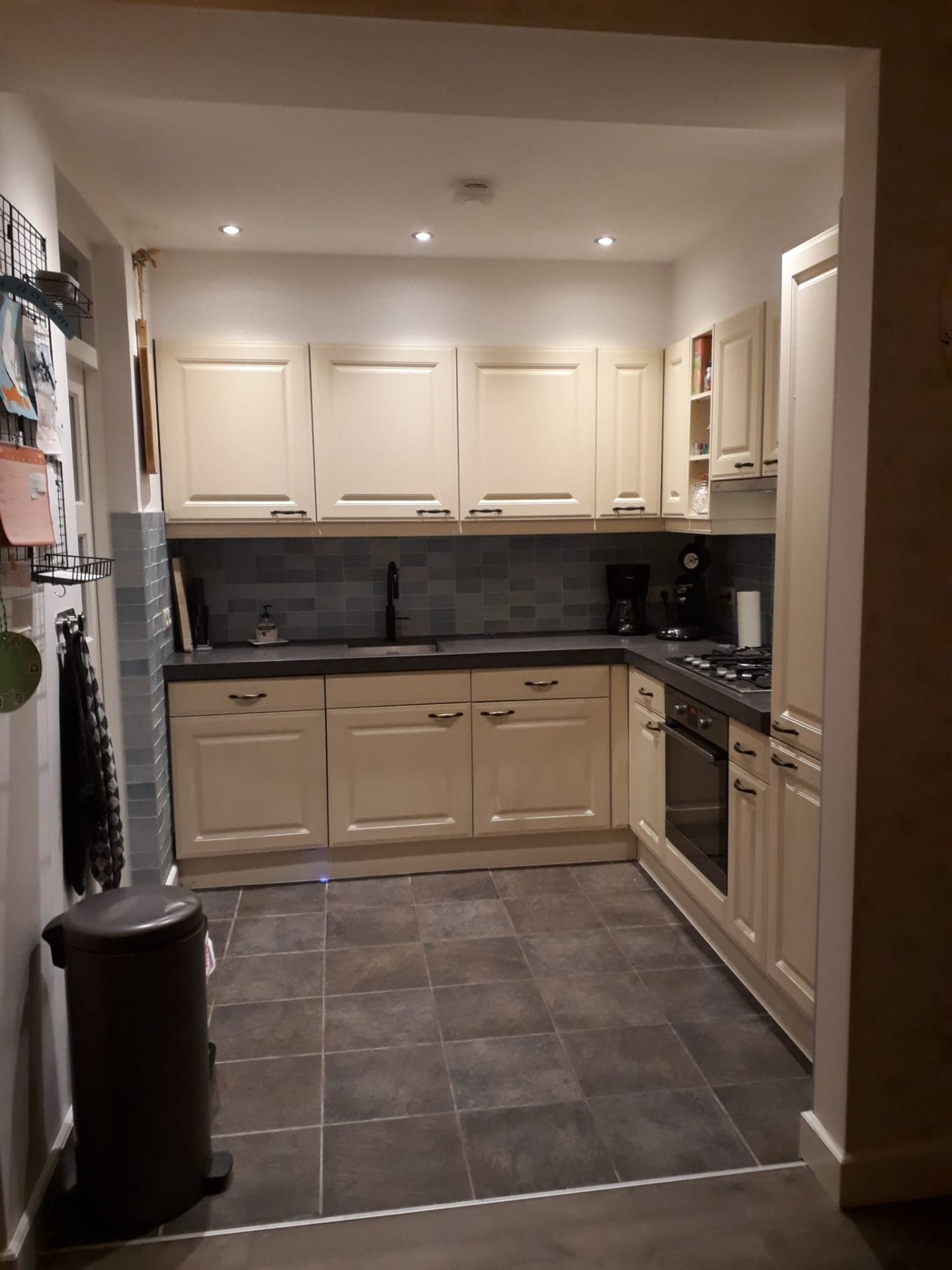 De keuken was eerst zwart met kaders en nu mooi glad in cashmier kleur, zie eerste foto’s