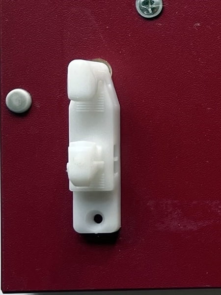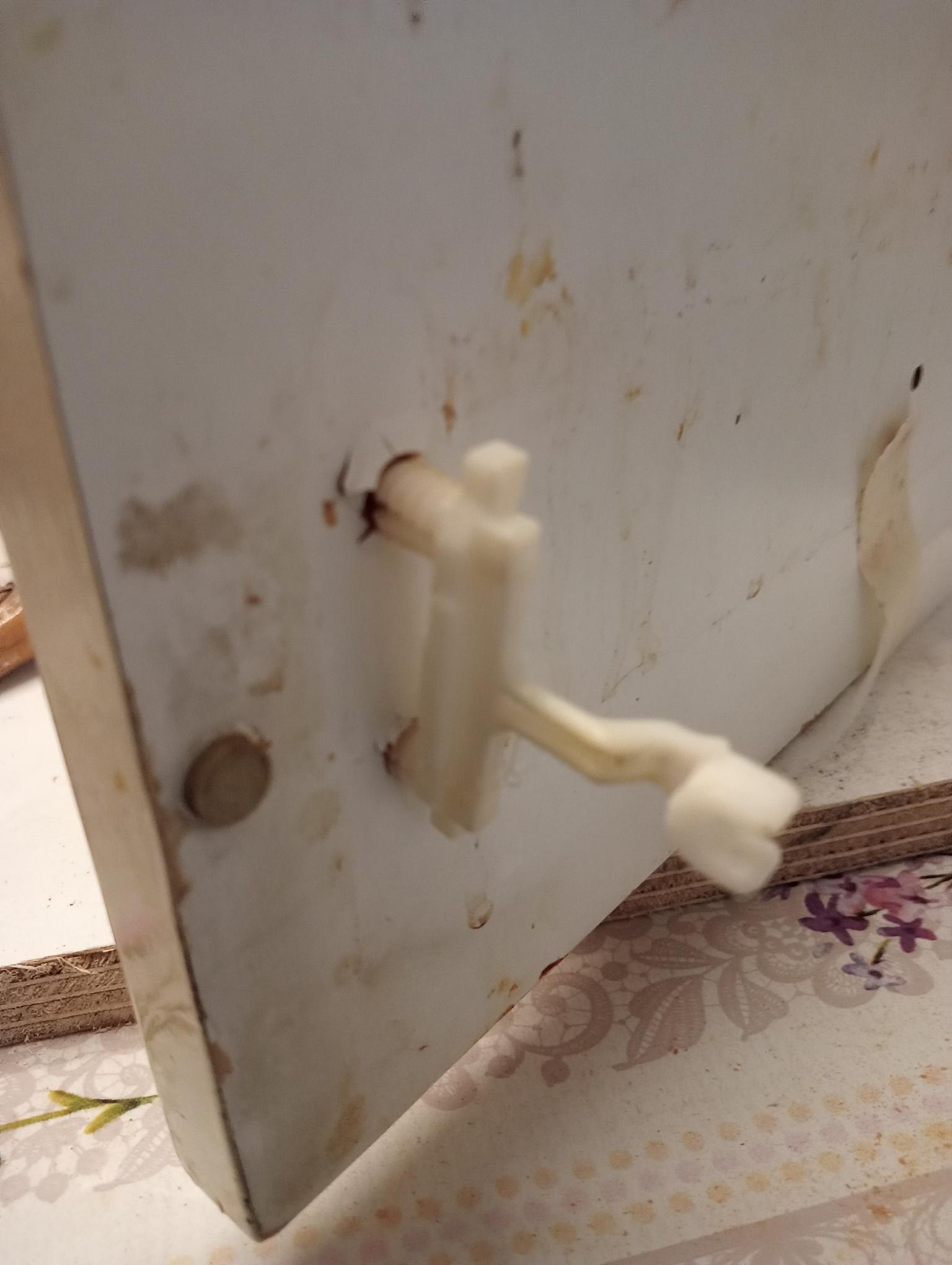 Uiteindelijk heb je dan 1 clip ‘bevrijdt’ en zie je de stompjes waar ze mee in het front zitten. Die lijken (vaak) op de indrukmofjes die je bij de scharnieren voor de deurtjes hebt gebruikt.