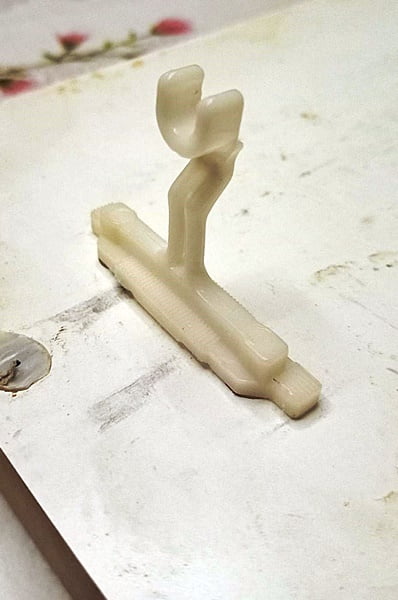 Zaag rondom de clip al het materiaal weg. Je houdt dan de clip, met het materiaal waar het nog in zit, over.