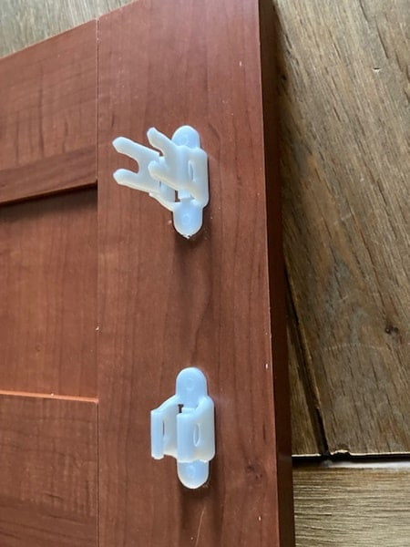 De scharnieren van jouw keukendeurtje zitten met 2 schroeven vast aan het deurtje. In het verleden gebruikte men dan mdf schroeven maar na verloop van tijd lieten die los, en daarom hebben de experts bedacht om 8mm of 10mms gaten te boren, en daar vervolgens kunststof pluggen in te tikken, waardoor de bevestigingsschroeven van de scharnieren ‘heul leng’ blijven zitten. Die plugjes noemen wij INDRUKMOFJES. Bij het hergebruik van jouw scharnieren is het bijna onmogelijk om die kunststof plugjes uit je oude deurtjes te halen, vandaar dat we die los er bij leveren. Die worden automatisch aan je winkelmand toegevoegd, want ze zijn eigenlijk een must om je nieuwe deurtje perfect te monteren.