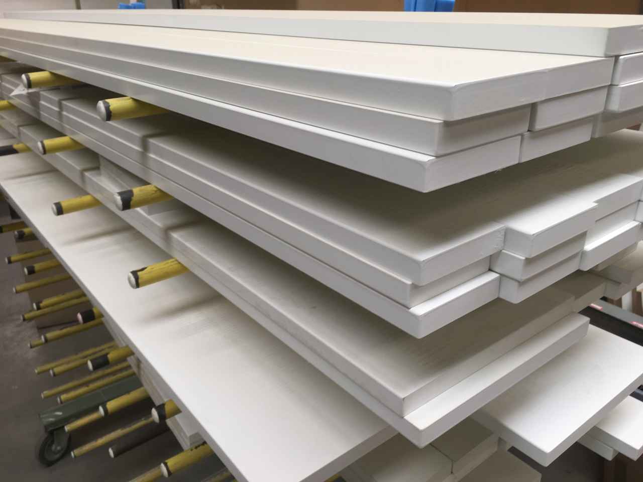 De basis (zie meer foto’s en video’s op onze FB pagina) is een 18mm of 19mm MDF die is gefreesd in een bepaald model. Daar komt een primer overheen en daarna wordt het laklaminaat daar overheen geperst.