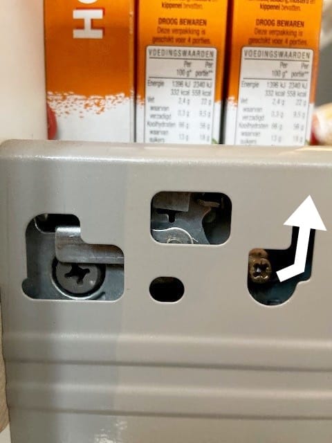 Het bovenste scharnier bij een spoelbak-kastje zit vaak wel al lager.